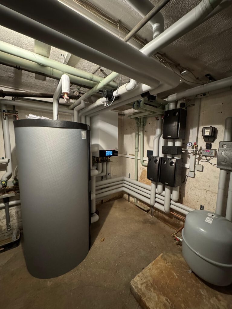 Der alte Ölkessel wurde durch eine moderne Monoblock-Wärmepumpe ersetzt.